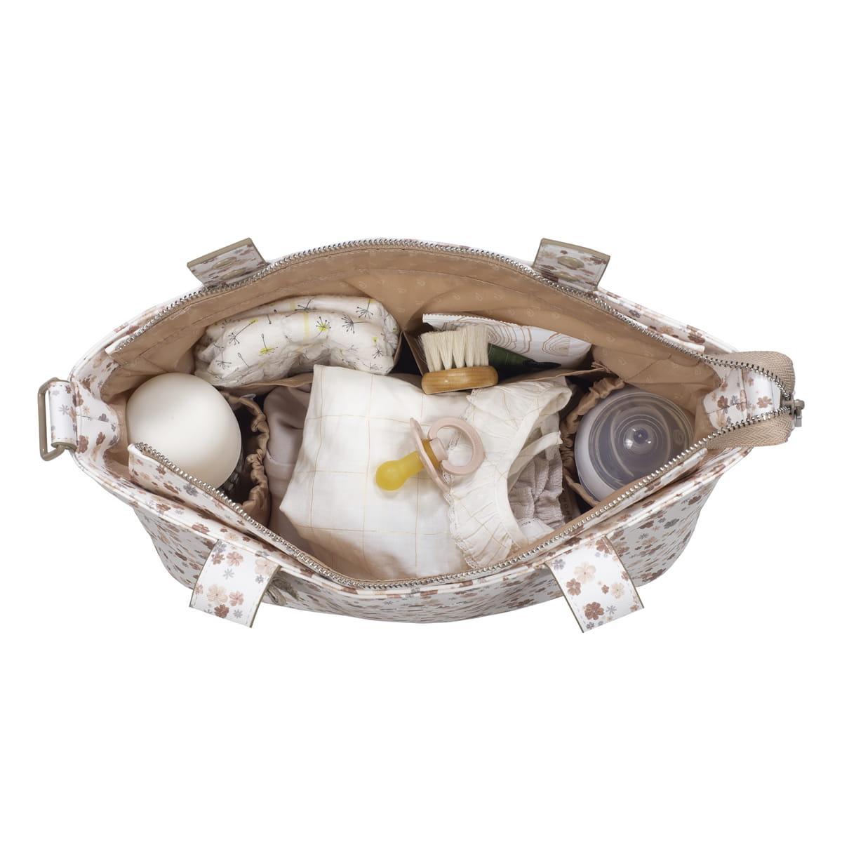 Capacità: È un modello leggero e, pur essendo più compatta rispetto alle borse fasciatoio più grandi, è spaziosa e ben organizzata per contenere l'essenziale per il bambino e gli effetti personali della mamma.
