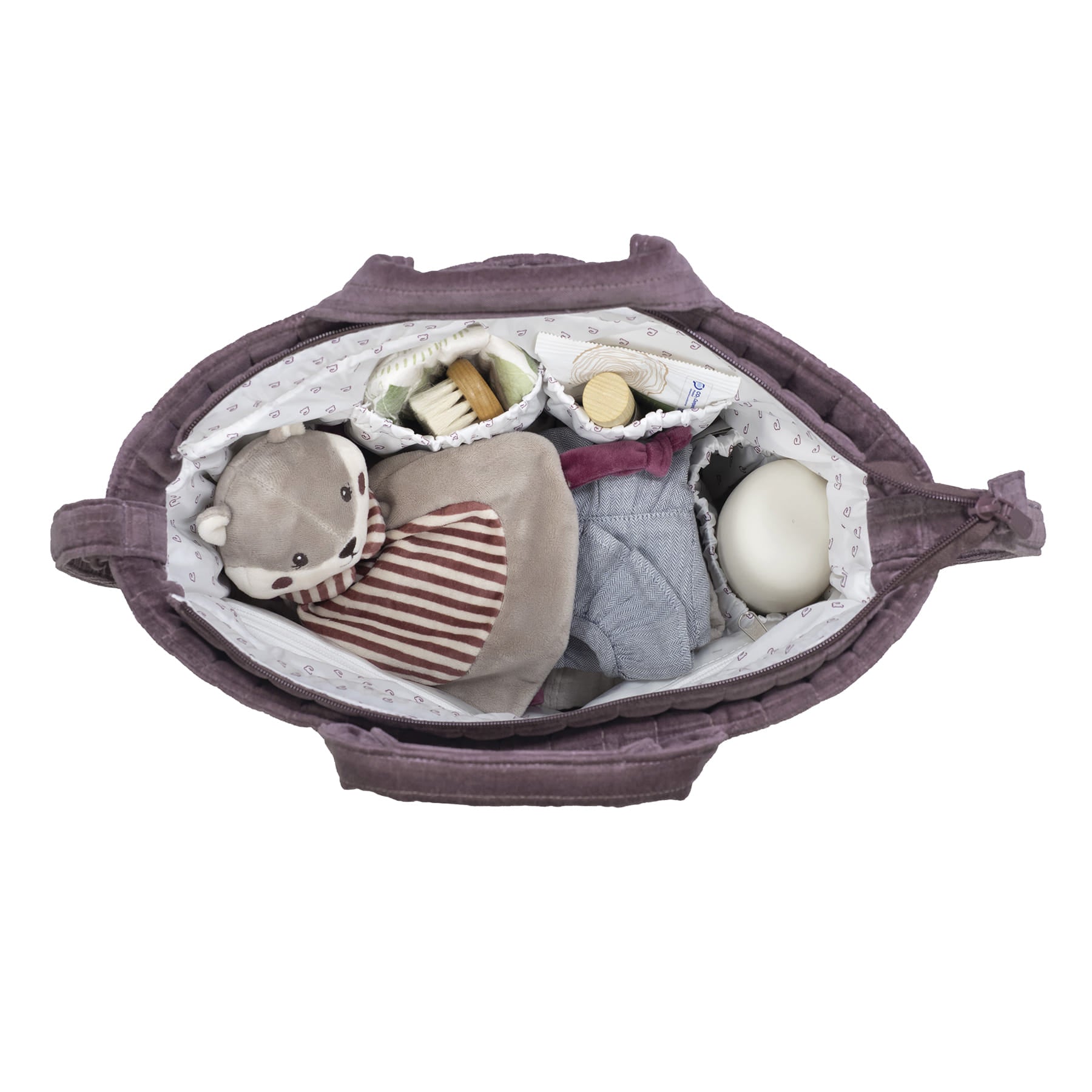Scomparti Interni: Fodera interna con tasche organizzative per riporre in modo ordinato pannolini, salviette, posate, creme e altri accessori.